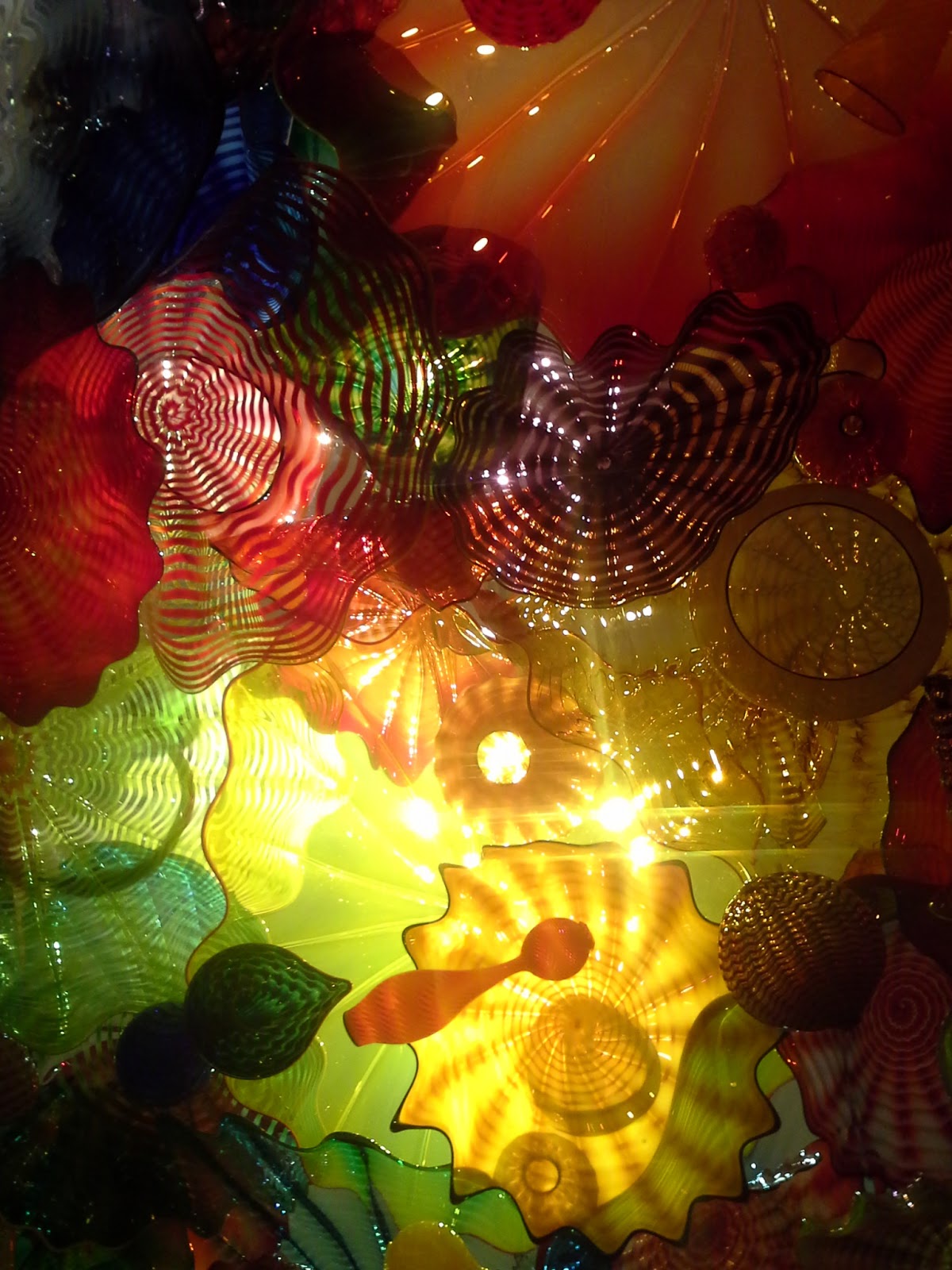 Tonight Dad and I went to see the Chihuly Museum. Dale Chihuly is an artist that makes sculptures out of blown glass. There were sculptures inside, in a glasshouse (green house), and outside. Here are a few pics of some of the things we loved seeing.